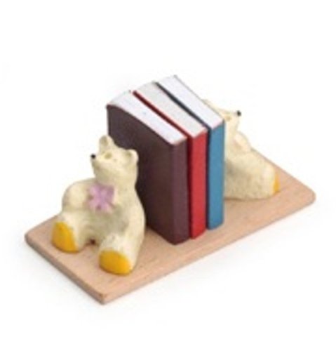 Doll house scale miniature books with bear bookends. Read more...
